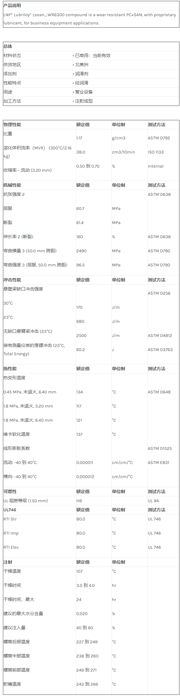 应用范围: 产品描述 LNP Lubriloy WR6300物性表