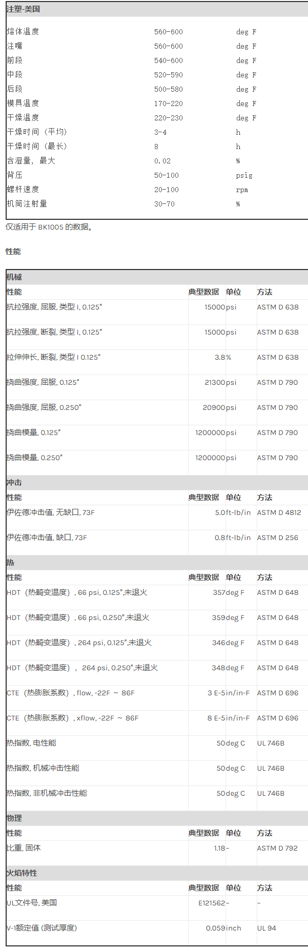 应用范围: 产品描述 Noryl PPO HMC202M物性表 仅适用于 BK1005 的数据。 加工